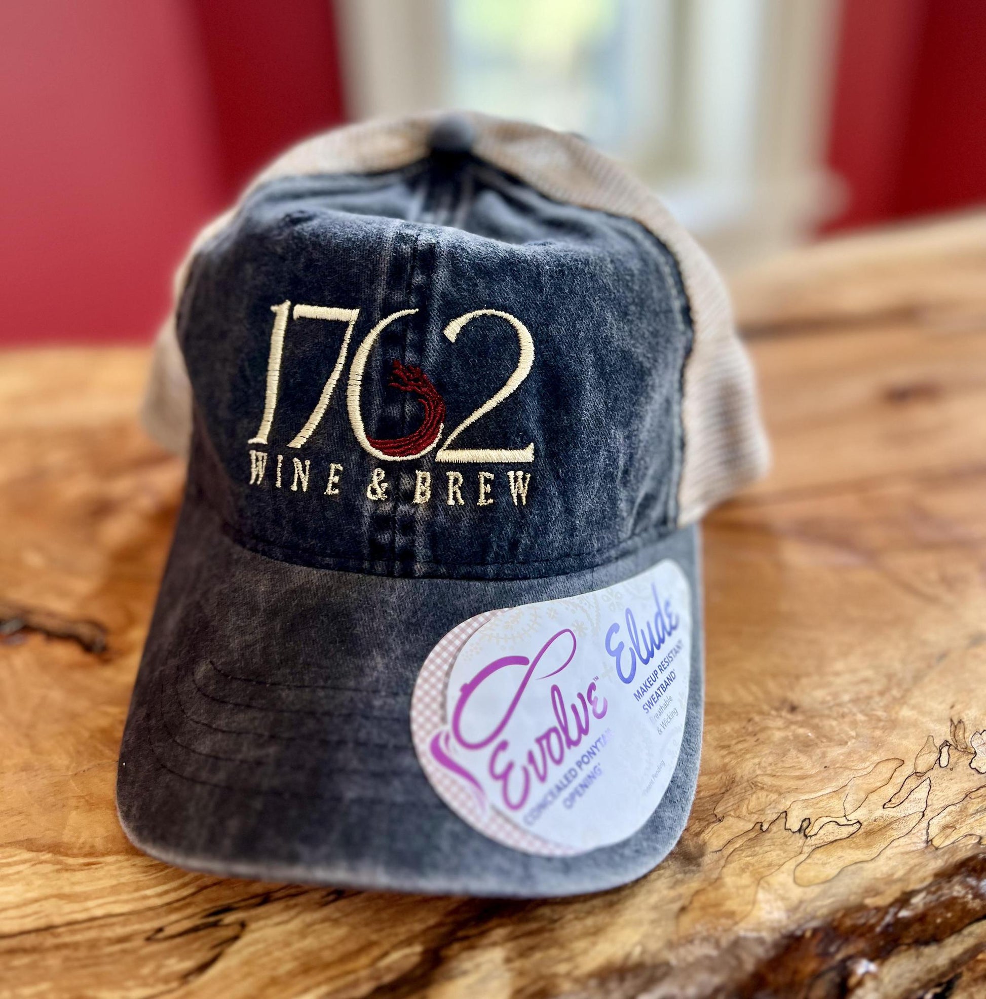 1762 Wine & Brew Hat (Grey with Tan Mesh Back with Cheetah Print under Cap)