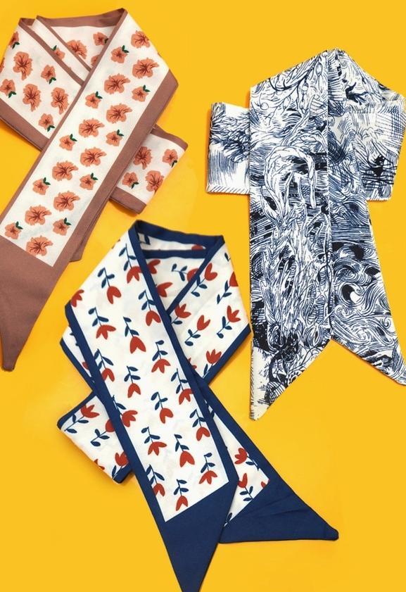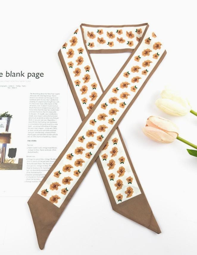 Stylish colorful pattern light weight Twilly headwrap scarf, and can be used as scarf necklace. Crafted from breathable, airy fabric, it offers a gentle, silky feel against the skin. Whether worn around the neck, styled as an accessory for your bag or hair, or necklace this versatile scarf, available in a range of beautiful colors. Product Details: Width: 35" length: 2"