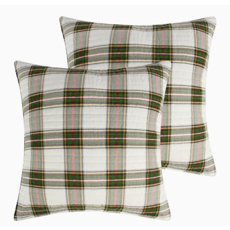 The Tatum Pines Quilted Euro Holiday Pillow Sham Set of 2 by Levtex Home is inspired by a holiday trip to a mountain cabin. Offered in green, red and white, this design will immediately transform your bedroom. These Christmas pillow shams feature a green and red on white holiday plaid. The Euro Sham Set of 2 (26x26in.) is microfiber, quilted with a cotton rich filler and is machine washable. Pillow inner not included. Enjoy this for years to come!