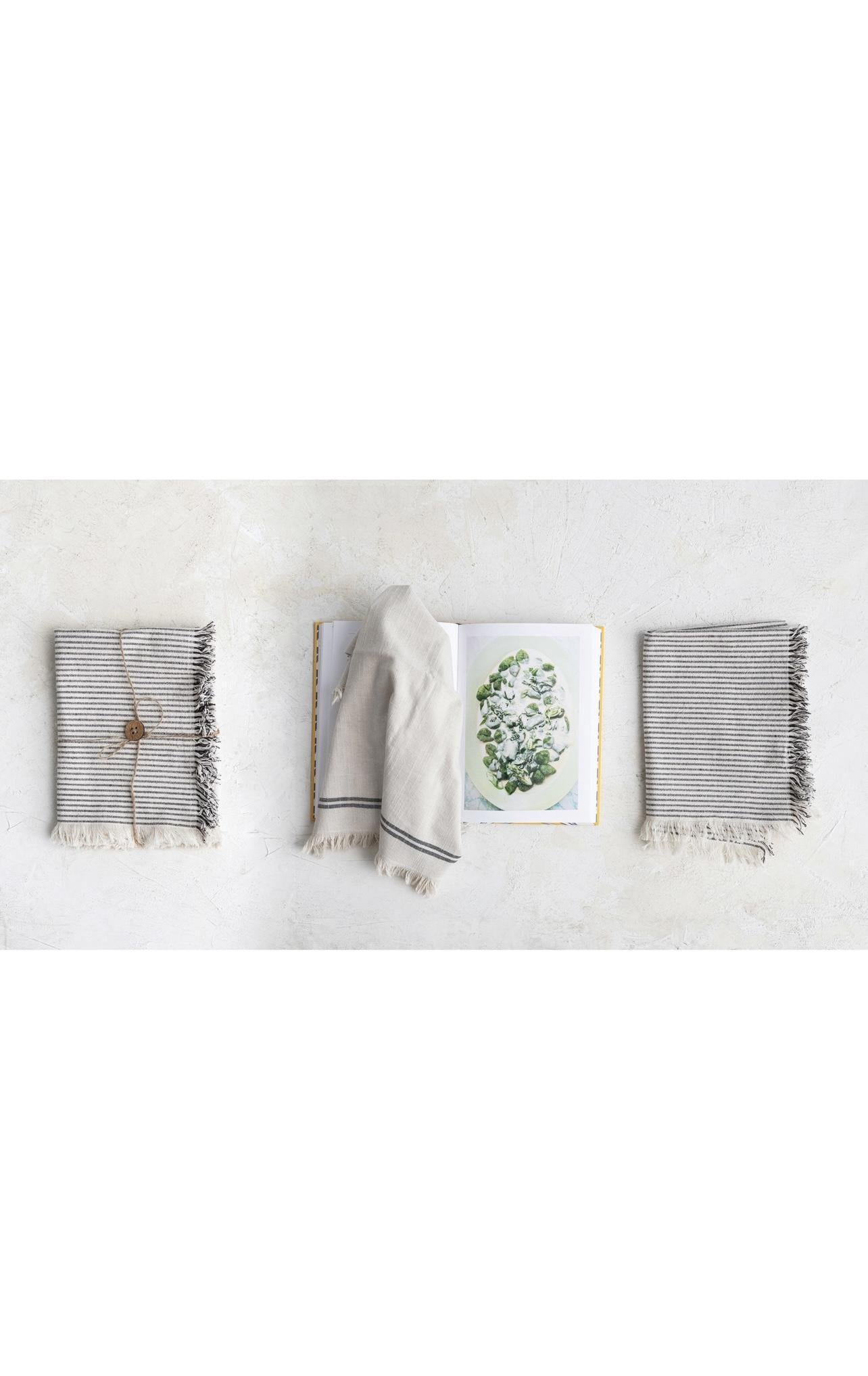 Woven Cotton Tea Towels w/ Stripes & Fringe, Set of 2