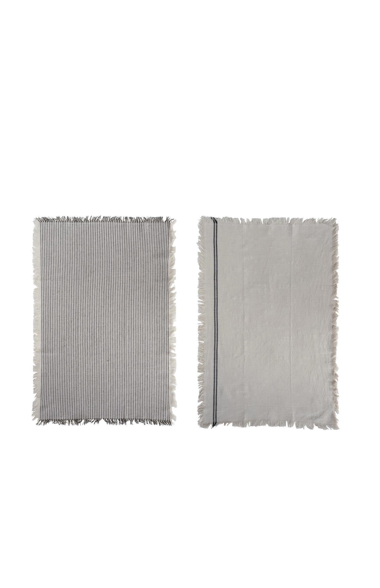 Catalog Name: 28"L x 18"W Woven Cotton Tea Towels w/ Stripes & Fringe, Natural & Black, Set of 2
